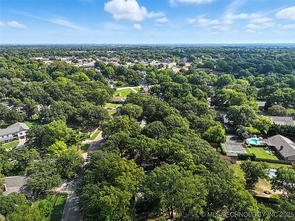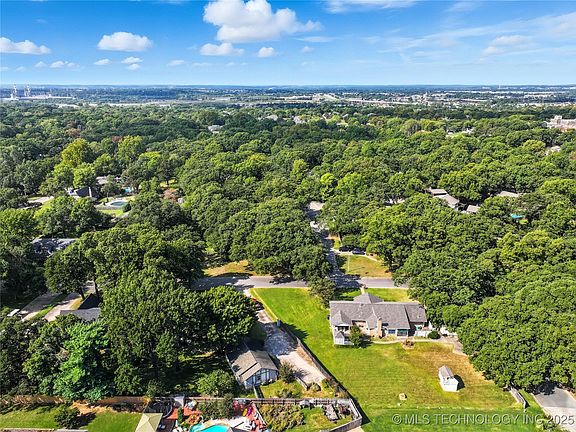 0.52-acre lot. Corner lot, mature trees. South Tulsa location in the Jenks Southeast Grade School district. Seller will install a new roof before closing. One-level home with 4 bedrooms, 2 living areas, formal dining, and extra space off the kitchen. Kitchen has a convection built-in double oven and induction cooktop. 2 and a half baths. Beautiful engineered hardwood flooring. Bedrooms 2 and 3 have a pullman bath that leads into the hall bath. Spacious primary bedroom with vaulted ceiling, rustic beams, and a sliding door that leads out to the patio and in-ground pool. Gazebo and greenhouse. Vaulted ceilings in the family room and a sunken formal living room that is connected to the formal dining room, which has doors leading into the kitchen. Great neighborhood of Forest Oaks. Voluntary HOA. The property is sold as-is, with no repairs made by the seller. List price reflects some updates (replacing the carpet, paint, etc.)