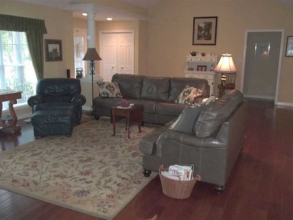 Spend quality time outdoors in the beautiful back yard with elaborate landscaping, irrigation system, 2 patios, water feature, Sunbrella awnings. This home is in move in condition and is a 1-story quality built home by Jimmy Kaster. The home features professional decor, plant ledges, 3 bedrooms, 2.5 bathrooms, master suite with his/hers vanities, separate shower, linen closet,and whirlpool tub. The great room features engineered wood flooring, a ventless gas fireplace and formal dining room for those special occasions. The fully applianced kitchen features granite tops, a work island that also serves as a breakfast bar, built in planning desk, and is open to the sun room. The large master bedroom and walk in closet also features engineered wood flooring. Every window has energy saving window film to block UV and provide for privacy. You will have peace of mind with the owned 4 camera security system. Plenty of room in the attached 2.5 car garage with cabinetry and attic storage above, plus the drive way has been expanded to park 3 cars! In your leasure time you can walk to Deaconess Sports Park and utilize the walking/exercise track, or go fishing in the common lakes with the kids! For the Buyer's peace of mind, the Seller is offering a 1 year home warranty with America's Preferred Home Warranty covering the major systems. Seller is a licensed Realtor and this has been their personal residence.