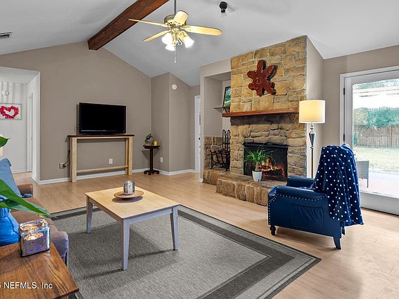 Zoned for top-rated Mandarin schools, this charming slice of paradise offers comfort, space, and convenience for first-time buyers or a growing family. Featuring a light-filled split floor plan, the layout includes a spacious primary suite with walk-in closet, split from the two additional bedrooms, and a versatile flex room perfect for an office, playroom, or game room. Enjoy gatherings in the formal dining room and relax in the vaulted living area with exposed beam. The eat-in kitchen includes brand-new stainless steel appliances and updated light fixtures throughout. Step outside to a large fenced backyard, ideal for play, pets, and future customization.