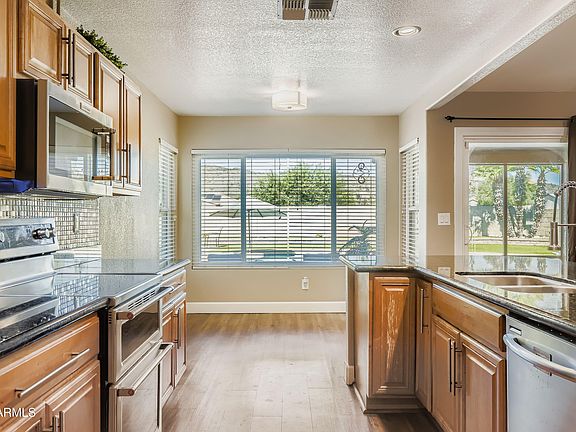 MOVE IN READY. NO HOA. NO BACKYARD NEIGHBOR. YES to LARGE LOT 9,419 sq. ft. w/ LARGE deep diving/ swimming pool & spa! MANY UPDATES & UPGRADES throughout the years. 3 BEDS + FLEX FUN ROOM/ 2 BATHS/ EXTENDED ARIZONA ROOM = 2242 sq. ft. Vaulted high ceilings w/ 2 natural sky lights. Stainless steel kitchen appliances. Granite counter top. Luxury Vinyl Plank flooring. Newer HVAC. Formal Dining Room. Laundry room w/ sink & cabinets. Garage w/ more built in cabinets. LARGE front courtyard & driveway w/ lighted pavers. RV GATE w/ additional side gate. Backyard is filled w/ fruit trees, plants, garden & high quality synthetic grass. Excellent Location. Mountain Views. North/ South facing. Near restaurants, shops & schools. See both the daylight & sunset photos to truly enjoy this BEAUTIFUL HOME!
