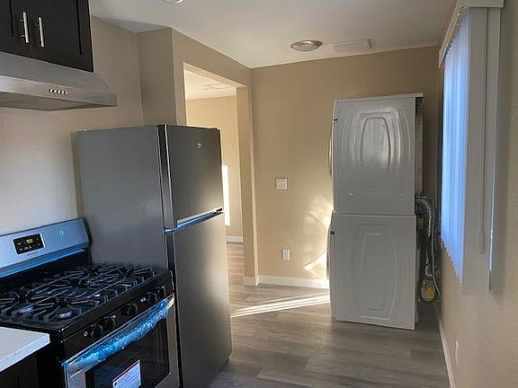 Wow! This Stunning Apartment-Home is in a Security Building with automatic gate opener, Features a everything is brand new in and outside Stucco/Paint, waterproof laminate flooring, Kitchen has new Cabinets and stainless steel appliances including: Refrigerator, Stove and stackable Washer and Dryer ing unit. Clean Bathroom. This is a must see unit just bring your U-HAUL Tenant pays for electricity and gas, Landlord pays for water.