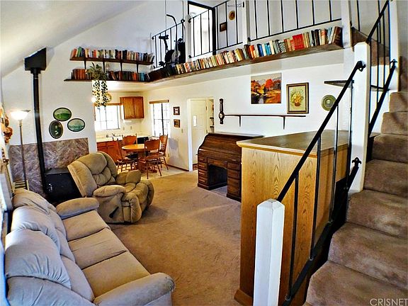 Wonderful Country Home only 30 minutes from Valencia Mall with views of the lake. Three bedroom with one downstairs and two upstairs. Two baths one downstairs with tub show combo and one up with shower. Large country kitchen with a dinning area. Ceramic tile counter tops and tile floors. Vaulted ceiling in the living room which has the pellet stove. There is a balcony hallway overlooking the living room with a ceiling fan to circulate the air. There is a evaporative cooler for those rare warm summers. There is a wrought iron fenced yard in the front and side yards. The gentle rise hill from Lookabout Road has been developed as an Eco-friendly water saving space and cover with smooth rocks. Enjoy the peaceful quite life in the mountains where you can see the stars at night.