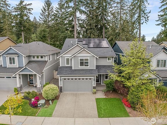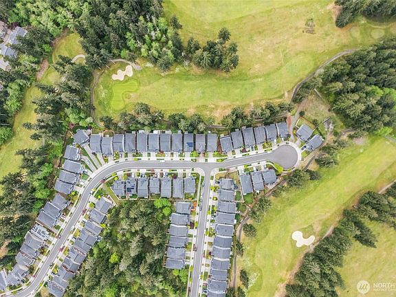 ** New carpet downstairs** Indulge in the ultimate luxury living on the First Fairway of Hawks Prairie Golf Course. This stunning Campus Peak home/5 bedroom plus an office and 2.5 baths, combining flawless design with exceptional details for the perfect paradise. Inside, you'll be greeted with elegance and style, rich espresso cabinetry, sleek quartz countertops, stainless steel appliances, and beautiful engineered hardwood floors. The primary suite is a sanctuary, offering a spacious 5-piece ensuite with a soaking tub, slate floors, and a walk-in closet. Located on a quiet dead-end street, solar panels, this home provides both serenity and convenience, with quick access to I-5 and JBLM.