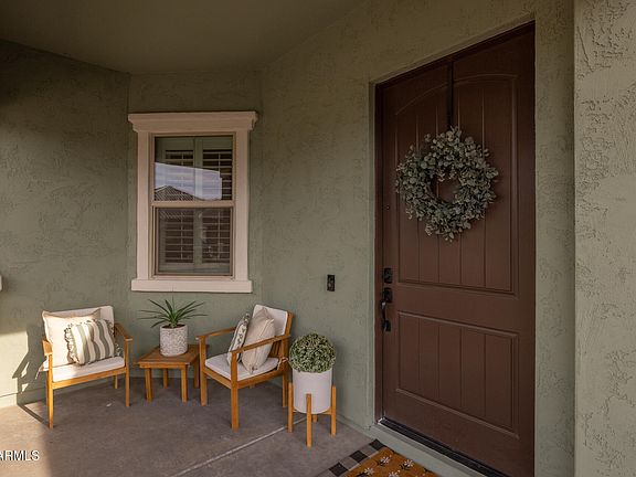 Step into this impeccably upgraded and lovingly maintained home in Cooley Station, where style meets comfort in a spacious 3-bedroom layout with a versatile den behind elegant glass French doors and 3 full baths across 1,891 SqFt of open-concept living. The gourmet kitchen is a showstopper, featuring sleek white and grey cabinetry, Quartz countertops, subway tile backsplash, matte black appliances, a farmhouse sink island with breakfast bar, and designer pendant lighting. Entertain effortlessly in the great room with tray ceilings and expansive center-meet sliding glass doors that lead to a covered patio and a sparkling 2022-built pool with a waterfall feature and travertine decking. The luxurious primary suite offers a serene retreat with its own tray ceiling, walk-in closet, and spa-inspired bath boasting dual sinks, a framed mirror, and an oversized tiled shower with bench seating and multiple shower heads. Additional highlights include plantation shutters, custom wall treatments, wood-look tile flooring in living areas, plush carpet in bedrooms, and a well-equipped laundry room with cabinetry and sink. Enjoy resort-style amenities like pools, playgrounds, and scenic walking/biking paths, all in a prime location near dining, shopping, and easy access to the 202.