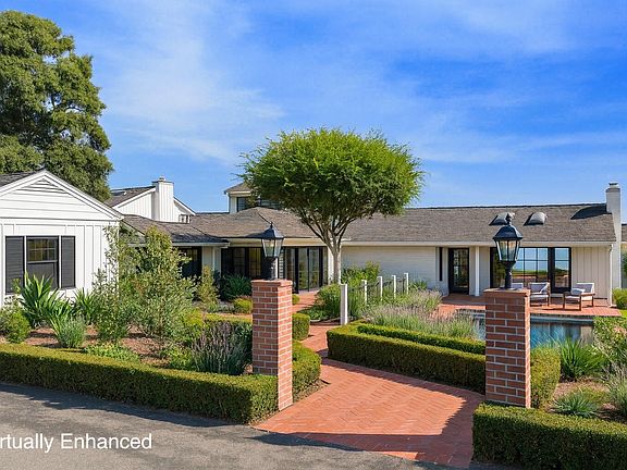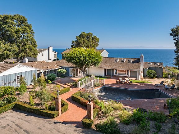 Poised above the Pacific on approximately ±2.5 acres of bluff-top land, this Hope Ranch estate captures the essence of coastal California living wide-open ocean views, privacy, and a lifestyle defined by natural beauty. A gated drive winds through groves of avocado and lemon trees, leading to the residence. Behind the home, sweeping lawns stretch toward the bluff's edge, where the horizon opens to uninterrupted views of the ocean and islands beyond. Inside, vaulted beamed ceilings, a stone fireplace, and walls of glass framing the sea create a dramatic focal point, while spacious interiors are filled with natural light and designed to maximize the views from every room. The dining room opens effortlessly to the backyard, the kitchen includes a bright breakfast nook, and the upstairs primary suite enjoys a private perch with commanding vistas. A separate 1-bedroom guest quarters with its own kitchen, living room, and private entrance offers both independence and comfort for extended stays. Outdoors, the property embraces coastal living with a pool and patio, expansive lawns, fruit trees, and breezy palms that set the stage for relaxation or entertaining. From greenhouse to pathways to bluff's edge, every element is in place for a lifestyle that is immediately enjoyable yet also holds opportunities for future vision. Here, in one of Santa Barbara's most coveted enclaves, residents enjoy a beautiful beach, miles of equestrian trails, tennis courts, and close proximity to La Cumbre Country Club & Golf Course. Rarely does a property combine such an extraordinary setting with a residence that is ready to enjoy today, with the option to shape its next chapter tomorrow.