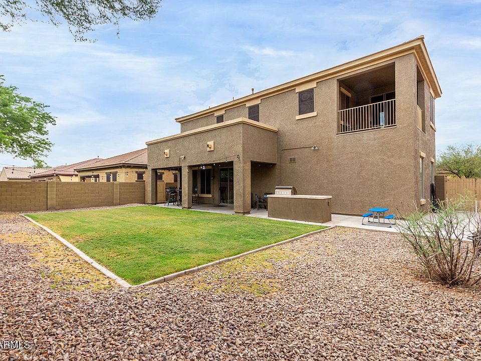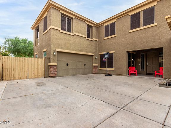Welcome to this stunning two-story in one of Goodyear's most desirable areas! From the long driveway, 3-car garage (1 car garage has been converted into livable space) RV gates & dual front doors, this home makes a statement. Inside, you'll find bright, open living spaces with sleek tile floors and a kitchen built to impress with granite counters, TONS of cabinets, backsplash, stainless appliances & a spacious island for gathering. Upstairs offers a loft + den, plus a HUGE primary suite with a sitting area, dual sinks & private balcony. All this just minutes from top-rated schools, shopping, dining, golf, and easy freeway access! and a walk-in closet for easy organization. A flex room with a separate exit is a great feature of this residence, making it perfect for guests or a workout area. The backyard includes a cozy covered patio ideal for morning coffee, a fresh lawn, and a built-in BBQhost fun gatherings and enjoy time with your loved ones! Welcome home!