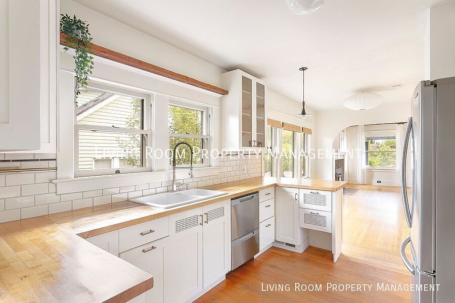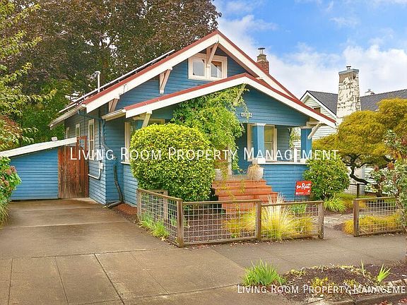 This Southeast Portland gem blends timeless character with modern updates for a warm and welcoming home. Inside, you'll find original hardwood floors, vintage built-ins, French doors, a custom breakfast nook, and a wood-burning fireplace (please note it is decorative only and non-functional) anchoring the living room. The efficient, light-filled layout includes two bedrooms and a full bath on the main level, plus a private upstairs primary suite with its own half bath. A flexible bonus space is ideal for a home studio or gym, while luxe bathroom finishes add a touch of modern comfort. Everyday living is made easy with a brand-new washer/dryer, central AC/heat, and solar panels to keep energy costs low.