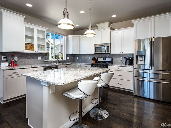 The Village at King Mountain is Bellingham's premiere community! It's unique location blends the outdoors seamlessly with city lifestyle. This practically new 4bd, plus office high end home features an open floor plan, stainless appliances, granite counters, in home speaker system, custom cabinets, large master en-suite, and laundry room on each floor! Plus custom blinds & fiber optic internet! Enjoy the backyard that backs up to open space, trail system & neighborhood park too!