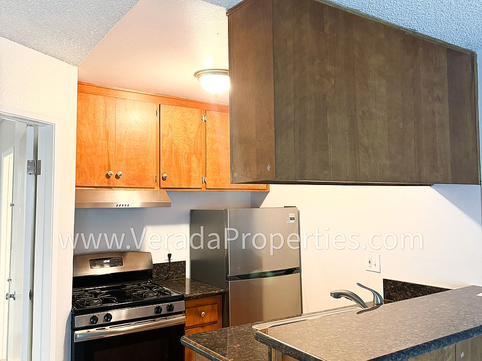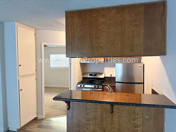 Downstairs 1 bedroom apartment in a peaceful courtyard complex. The apartment features: Spacious living room with laminate wood-style flooring, Open kitchen with a bar and stainless steel appliances, Comfortable bedroom with en suite bathroom, Assigned off-street parking space, Trash, recycling, water and sewer paid by landlord. The complex features: Peaceful courtyard with lush landscaping and mature trees, Communal laundry room, Secure gated entry front and back. We require a minimum credit score of 650 per applicant, and a monthly combined income of 2 1/2 times the monthly rent to qualify ($4,300/mo), as well as a good rental reference of at least 6 months within the past 2 years. Month to month after initial one year lease term. This is a 100% non-smoking property. Small dogs (under 40 lbs) and cats allowed, max 2. $70/mo Pet Rent.