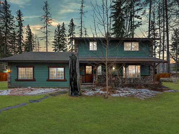 Love Montana Living nestled in the trees with beautiful views. This 3 bedroom 2.5 bath home sits on one acre in the WF School District, with limited views of Whitefish Mountain Resort to the north and peaceful pastures to the south. With no neighbors to the south or west you'll find privacy in your fenced backyard with a covered deck, concrete patio, fire pit, garden and 2 storage sheds. Built in 1994 this home has been remodeled starting in 2005. A rustic style with custom rock work on the exterior, updated siding, new roof (2010), and new fence (2018). The interior has gorgeous stone floor (kitchen/master), laminate flooring, and new paint (2018). With alluring rustic trim and accents, butcher block counter tops and a covered front porch there are many features any home owner would love.
