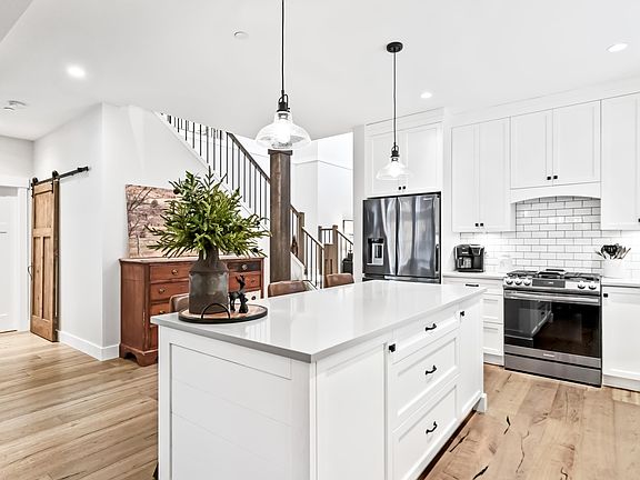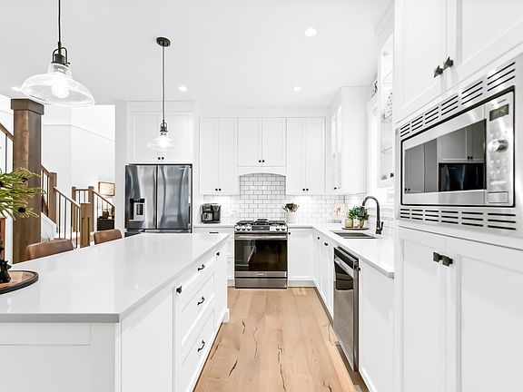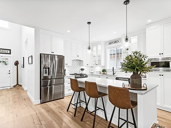 Discover peaceful living at Creekside Mills. THIS HOME HAS IT ALL! Starting with an updated kitchen featuring newer high-end appliances, quartz counters, and a large island overlooking a VAULTED GREAT ROOM with SOUTH-FACING WINDOWS. French doors open to an all-season covered deck looking at nature. The MAIN FLOOR includes a PRIMARY BEDROOM with walk-in closet and ensuite with double sinks and large walk-in shower, plus a den and laundry. Upstairs offers two bedrooms, a full bath, and a loft. Engineered hardwood floors & tasteful lighting throughout; other features include engineered hardwood floors, heat pump with A/C, built-in vacuum, water softener, epoxy garage, and in ground sprinklers. RESORT STYLE amenities: pools, sport court, gym, gardens, dog park, trails, and a lively clubhouse.