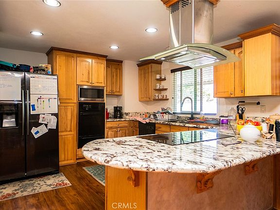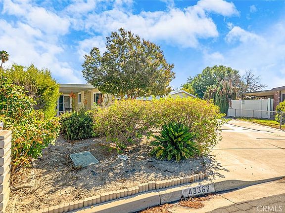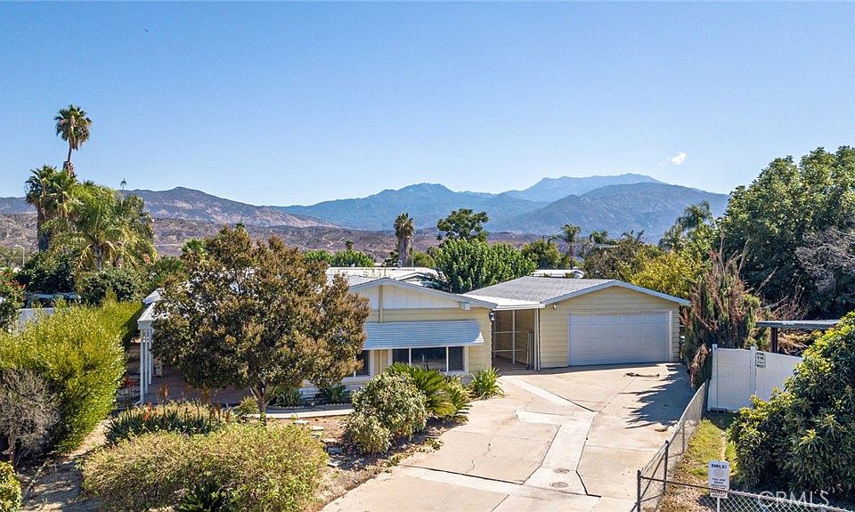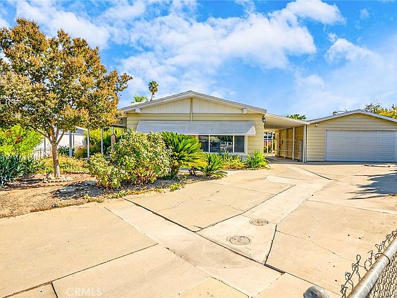 Beautifully renovated and set on its own land with a permanent foundation poured in 2015, this spacious 1,996 sq. ft. Hemet residence offers the perfect blend of comfort, style, and functionality. Featuring 2 bedrooms and 2 updated baths, the home boasts a flowing floor plan with vaulted ceilings, large picturesque windows, ceiling fans, and contemporary lighting. The inviting living room showcases a built-in china hutch and upgraded entry, while the extended family room offers skylights, custom cabinetry, a wet bar with wine rack, and sliding glass doors. The chef’s kitchen is a true highlight with solid hickory cabinetry, soft-close features, pull-out shelving, black-and-white granite counters, breakfast bar seating, stainless steel appliances, designer exhaust hood, and recessed lighting. The laundry room includes matching granite folding space, utility sink, and washer/dryer. Retreat to the spacious primary suite with office/retreat area, walk-in closet, and a spa-like bath featuring dual sinks, refinished soaking tub and shower, and tile floors. A second bath shines with marble counters and designer fixtures. Outdoors, enjoy a breezeway leading to a two-car garage with opener, fenced backyard with fruit trees, and a front yard PVC irrigation system for easy care. Renovated in 2017, this move-in ready home combines thoughtful updates, modern finishes, and everyday convenience—all in a desirable Hemet location.