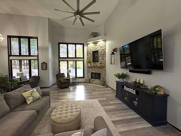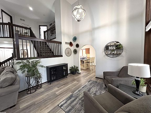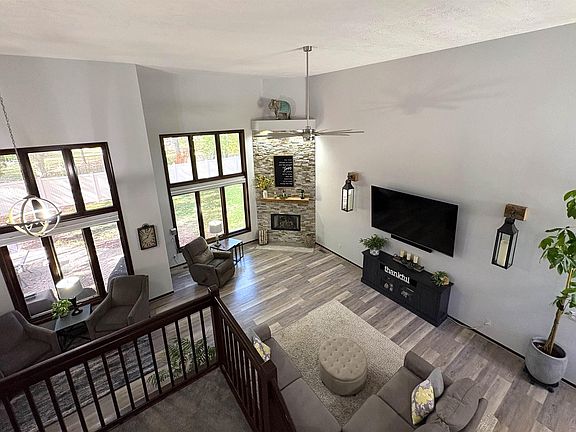 Check out this beautiful home tucked away in Rivergate Farms Sub! Updates include: Furnace & A/C (2016), Roof (2009), Sump Pump (2025), Washer & Dryer (2023), Refrigerator & Garage Door (2022), newer carpet, updated half bath, fixtures & recessed lighting. Spacious great room features vaulted ceiling, gas fireplace & luxury vinyl flooring, kitchen offers ample space with island, maple cabinets, granite counters, JennAir appliances, 2 ovens, gas cook top, pantry with pull-outs, breakfast nook overlooking backyard. Primary bedroom suite on first floor includes updated full bath with spa tub, shower, dual sinks & walk-in closet, 3 bedrooms and full bath upstairs, open staircase overlooking great room, first floor laundry. Finished basement adds more living space with rec room area featuring bar and half bath, step outside to private fenced yard with paver patio for outdoor entertaining. Don't miss out on this fantastic home! *Garage heater & basement tv are excluded. Great room tv and lanterns are negotiable.