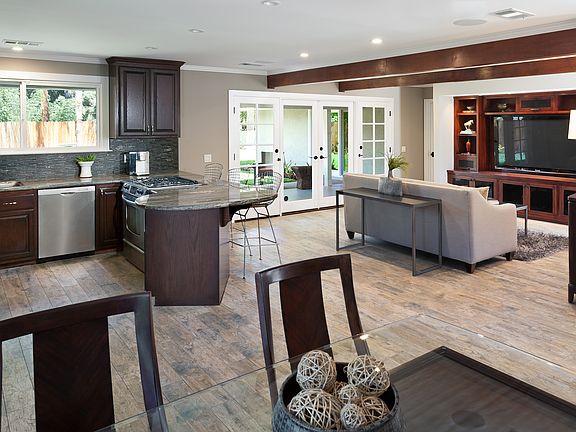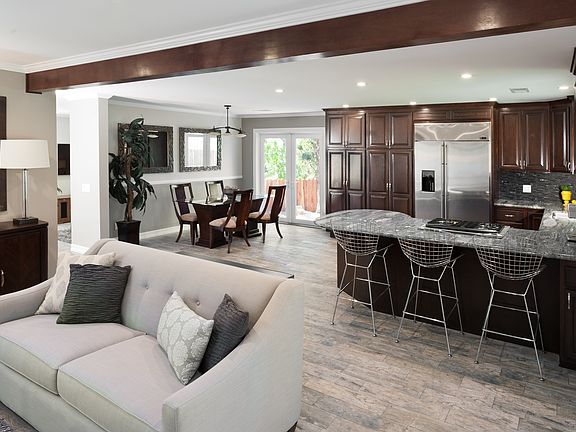 ShowcaseDIGGS:Located on a spacious cul de sac and enjoying sweeping views of the mountains- this is a home that takes your breath away. Clean lines, crisp landscape and ledge stone accents hint of the quality inside. Totally renovated from top to bottom, the floor plan is perfect for today’s lifestyle. To the left is a perfectly sized Living Room with picture window and warm fire place. To the right is a sweeping great room with a new gourmet kitchen, eat in area and impressive media wall. The wall of glass doors leads to a spacious covered patio and large, private backyard. Three bedrooms includes a generous master suite with heated bathroom floor. Fully finished garage with convenient access to house is the perfect man (or woman) cave. 4337AcampoAve.com