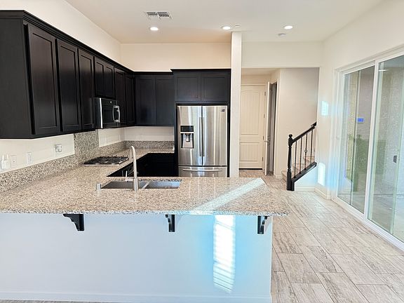 Gourmet Kitchen: Enjoy quartz countertops, stainless steel appliances, a spacious pantry closet, and elegant pendant lighting over the dining bar, all complemented by espresso cabinetry.
