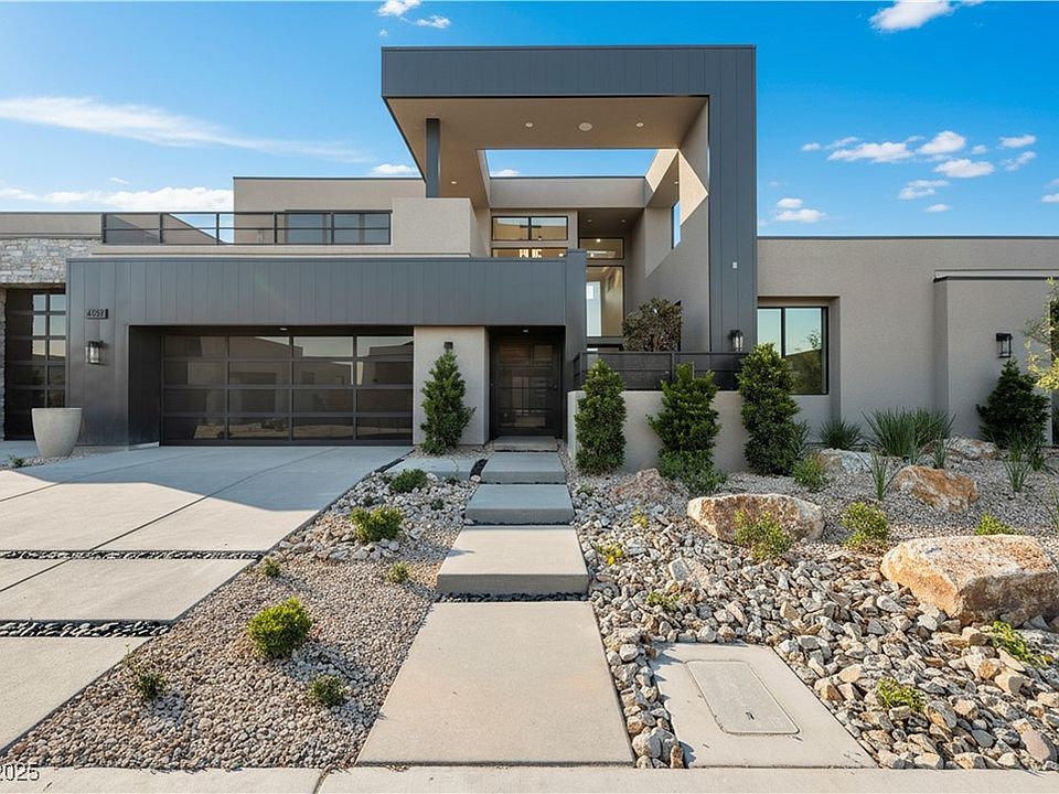 Located within the brand-new gated subdivision of The Estates at Lone Mountain, this half-acre home comes fully turnkey. In this exclusive nine-lot community, The Spire plan offers a thoughtfully designed two-story layout with 4 bedrooms, 4.5 baths, an upstairs game room, and an attached RV garage. The home's modern exterior showcases metal-clad and natural stone accents, while the interior embraces a refined industrial design that balances warmth with a touch of edge. Matte black and wood cabinetry, natural stone cladding, and warm wood floors are complemented by metal elements throughout the home.