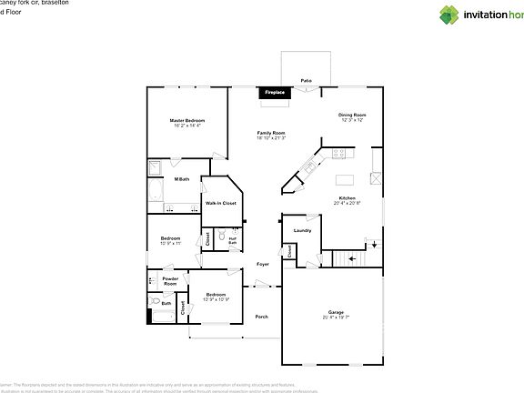 Home Features and Amenities: Air Conditioning, Covered Porch, Fireplace, Garage, Kitchen Island, Long Lease Terms, Luxury Vinyl Plank, Patio, Pet Friendly, Primary Bedroom on Main, Smart Home, Stainless Steel Appliances, Tile, Walk in Closet, W/D Hookups, and professionally managed by Invitation Homes.