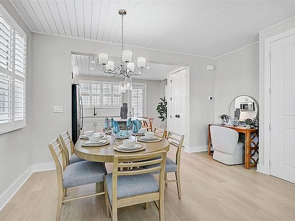 Stunning never-lived-in model home on one of the largest lots in Hunters Point, offering excellent privacy and expanded waterfront views just minutes from Anna Maria Island. Features include a heated finite-edge pool, deeded private dock suitable for approximately 25 ft vessels, and a three-stop elevator. The home is elevated 16 ft. According to the seller, the 2024 coastal water event did not impact the home, with water reported only reaching the top of the dock. Designed for high-efficiency living with PGT impact windows, enhanced insulation, solar power with Sonnen battery storage, multi-zone HVAC, tankless water heater, irrigation system, smart locks, and home automation. The main level features a bright open layout with wide-plank flooring, coffered and beadboard ceilings, plantation shutters, surround-sound wiring, and a quartz kitchen with shaker cabinets, stainless steel appliances, and a large island. Covered terraces extend indoor-outdoor living. The upper level includes a spacious primary suite with screened porch overlooking the canal and pool, a walk-in closet, and a bath with dual vanities and heated flooring. Two guest rooms—one with a screened porch—share a Jack-and-Jill bath. A full laundry room completes the upper level. Additional features include a two-car garage with epoxy flooring, outdoor lighting, irrigation, and smart-home connectivity. Multiple covered and screened terraces offer comfortable outdoor spaces throughout the home. Hunters Point is a gated, golf-cart-friendly community with private roads and a forthcoming clubhouse and resort-style pool. HOA dues of $550 per month include cable, internet, pest control, grounds maintenance, and irrigation water. Convenient to marinas, dining, nature parks, Cortez Village, and the beaches of Anna Maria Island. Furniture may be available separately.