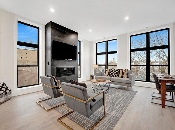 Located in Irving Park, this 3-bed, 2-bath unit offers open concept living. Featuring 9.5 ft ceilings, 8 ft solid core doors, hardwood floors throughout, a fireplace in the living room, and a large balcony in the rear with a gas line. Kitchen features custom cabinetry, custom vented hood, quartz counter tops, Bosch stainless steel appliances and island. Andersen windows and an interior sprinkler system. Garage Parking. Steps away from the Brown Line, Chicago Riverwalk and Horner Park offering 57 acres of recreational enjoyment. VARIETY OF FLOOR PLANS.