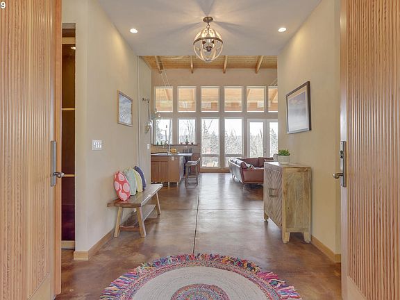 Very custom European Style home on a very private 20 acres just 2.5 miles to Sandy. close to fishing, hiking & golf. Just minutes to I-84 to Portland. Highly efficient Eco-friendly Designed home. Natural American clay walls, radiant heated concrete floors, vaulted pine ceilings, floor to ceiling windows,3 full suites. Fully enclosed/deer proof garden area. Detached 2 car garage w/workspace &storage.SEE V-tour & special features brchure