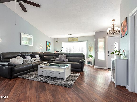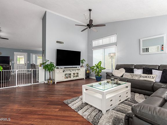 Welcome to Towne Meadows! This inviting home opens to a bright, airy floor plan with vaulted ceilings and a classic wood-burning fireplace that adds warmth and character to the main living space. The remodeled kitchen features quartz countertops, stainless steel appliances, generous workspace, and a functional center island with a breakfast bar. A bay-window dining nook brings in natural light and outside views. The primary suite includes a full bath with dual sinks and a walk-in closet. The entire home has been upgraded with new insulation, new ceiling fans in every room, and Low-E windows for improved energy efficiency. Outside the backyard has been thoughtfully designed for easy outdoor living, complete with Flagstaff stone, new grass, and a covered patio overlooking the pool. New sod along the side of the home for a fresh, finished look. The garage includes an AC-cooled man cave, ideal for hobbies or a comfortable workspace. This home has been beautifully maintained, updated and upgraded for easy, efficient everyday living.