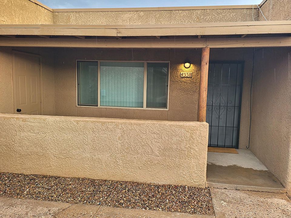 The unit has air conditioning, a ceiling fan, stove, oven, refrigerator, microwave, and washer & dryer hookups parking close to the front door, storage room off the front patio, new flooring, and paint.