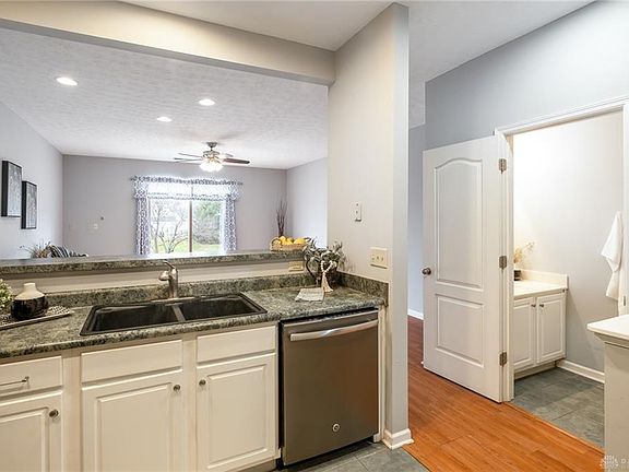 Enjoy maintenance-free living in Cinnamon Ridge Condos! Hang out with friends in the great room with LAMINATE FLOORING, or take advantage of warm days on the PRIVATE PATIO overlooking the community WALKING TRAIL. Meal prep will be a breeze in the CRISP KITCHEN with STAINLESS APPLIANCES and a BREAKFAST BAR! Upstairs, a LOFT is the perfect size for an office. The master bedroom boasts a CATHEDRAL CEILING and BRAND NEW BATH, and a second bedroom is located at the front of the unit. Keep your vehicle protected from the elements in the ONE-CAR GARAGE! HOA fees cover mowing, landscaping, exterior maintenance, pool, and water! Great location close to THE GREENE! Updates include water heater (2019) and appliances (2017).