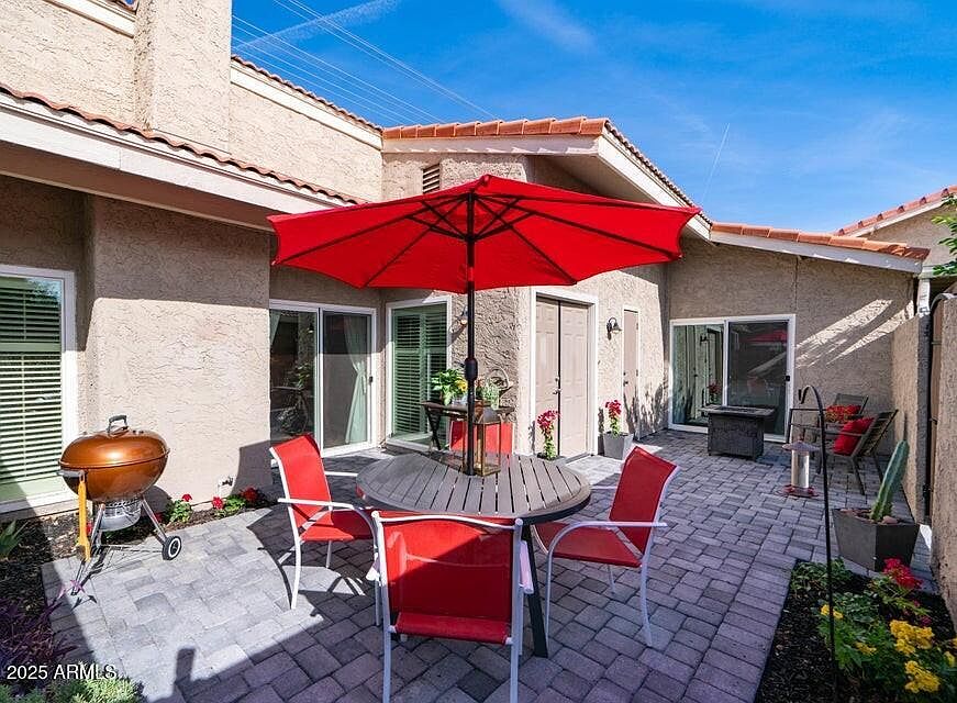 Back on the market! You can't beat this location or all the upgrades! Wonderfully updated 2 bed, 2 bath single level patio home with a 2-car garage in Arcadia w/ a large private quiet interior patio! Community is in the process of repainting the entire complex! Over $90k in updates including all high end windows which make this property very quiet, patio doors, interior doors, shutters, and 16 seer HVAC system. Roof ,water heater and garage door have been replaced in 2024 Beautifully updated kitchen with white cabinets, pull-out drawers, granite countertops, sink & stainless steel appliances & soffits have been removed. Spacious family room with a charming fireplace. Upgraded laminate flooring throughout all traffic areas and Master bedroom. Updated bathroom w tiled shower & newer vanity w double sinks. Walk-in closet features new shelving/organizer. Soffits removed and ceilings raised. Nice community pool! Walking distance to many great restaurants!