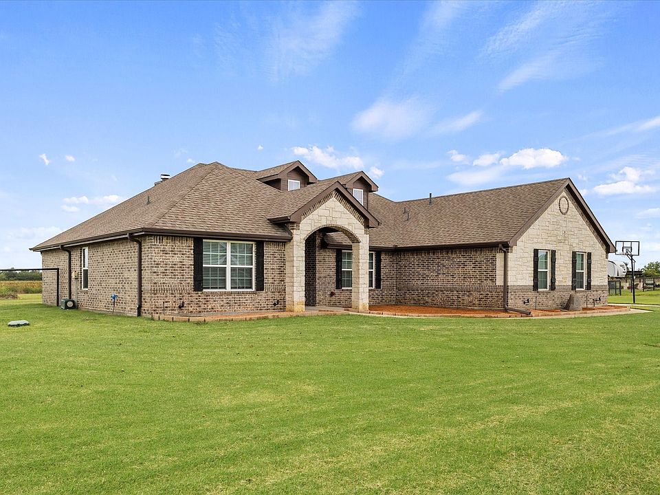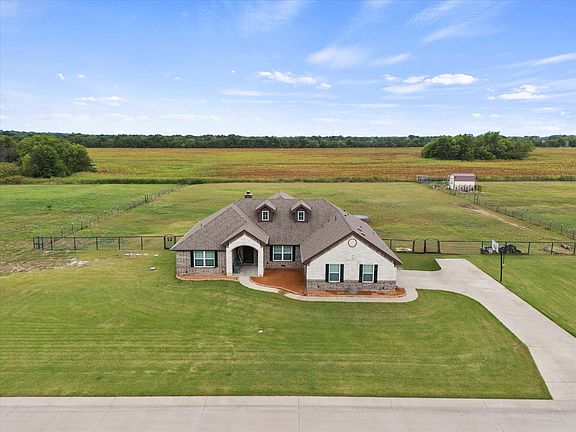 Rustic Elegance in Caddo Mills - Luxury Without Limits! Discover the art of luxurious living in this exquisite 4 bedroom, 2 bathroom property nestled in the charming setting of Caddo Mills ISD. This exceptional home is a masterpiece of design and comfort, offering the allure of NO HOA and NO CITY TAXES. From its fantastic curb appeal to its immaculate interiors, every inch of this residence exudes modern elegance blended with rustic charm. Step inside to be greeted by an open and inviting layout adorned with beautiful hardwood flooring. The heart of the home is the stunning gourmet kitchen, where floor-to-ceiling cabinets, gas appliances and an oversized island create the perfect space for culinary delights and entertaining guests. Adjacent, a cozy living space awaits, complete with a wood-burning fireplace that evokes warmth and comfort. A versatile study or formal dining area, enhanced by the character of knotty alder barn doors, provides flexibility to suit your lifestyle needs. The primary bedroom retreat is generously sized, offering a serene escape with its ensuite bath featuring a spa-like shower, dual sinks, and a spacious walk-in closet. Secondary bedrooms are thoughtfully designed to ensure guest comfort and privacy. The exterior of the property combines a stone and brick facade with full irrigation system, all contributing to its sleek curb appeal. The covered back patio serves as an ideal spot for gatherings or peaceful relaxation, while the fenced perimeter offers sweeping views of wide open spaces, perfect for those who value both privacy and the beauty of nature. This property stands as a testimony to refined rustic luxury in the serene setting of Caddo Mills!