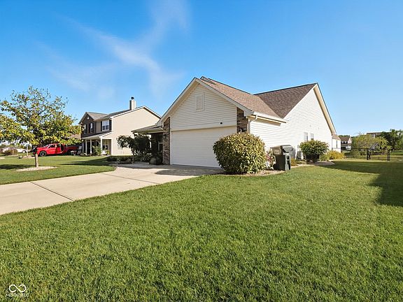 This stunning single-family home is nestled in the highly sought-after Windhaven at The Havens subdivision on a premium lot, offering the perfect blend of comfort and convenience in peaceful New Palestine. Step inside to discover spacious living areas filled with natural light, fresh interior paint completed in 2023, and beautiful new vinyl flooring throughout-there's no carpeting anywhere in the house, making it both stylish and easy to maintain. The modern kitchen is ideal for entertaining and features a new oven installed in 2022 and a dishwasher from 2019. Enjoy peace of mind with a new roof and gutters installed in 2022, ensuring durability and curb appeal for years to come. Step outside to your cozy, fenced-in backyard-complete with a brand new fence added in 2024-that overlooks a tranquil pond and features a lovely pergola, flagstone patio, and firepit, perfect for relaxing evenings or weekend gatherings. The outdoor living spaces, including the sidewalk, patio, garage, and the 12x16 Amish-built insulated barn (currently used as a mancave), all feature durable and stylish epoxy coatings for a polished, easy-to-maintain finish. The Amish-built barn is fully equipped with electric and HVAC, making it a comfortable and versatile space year-round. Adding to the curb appeal, custom concrete edging wraps around the entire home and is beautifully accented with river rock landscaping, creating a clean and sophisticated look. Daily essentials are close by with Kroger and CVS Pharmacy, while families will appreciate the proximity to Sugar Creek Township Park for outdoor fun. This property is ideal for those seeking a quiet suburban lifestyle with all the amenities you need just a short drive away. Don't miss your chance to make this inviting home in Windhaven at The Havens yours-schedule a tour today and experience the best of New Palestine living! *Professional Photos to come soon*
