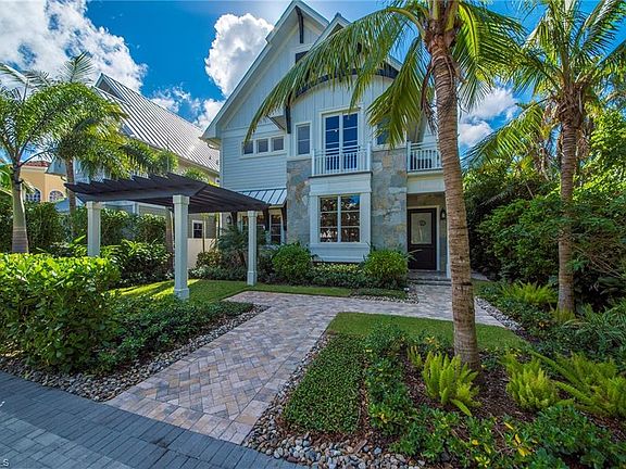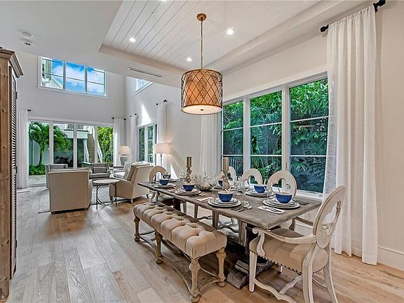 Arguably the best location for a rental in Olde Naples! Only 3 blocks from the white sandy beaches that make Naples one of the most desired locations in FL. This dream home boasts nearly 5,000 square feet with heated pool, southern exposure, and 4 Clive Daniel decorated bedrooms, each with its own en suite bath. One bedroom features four floating bunks, each with a privacy curtain, lamp and charging stations. Outside the bunk room, you will find a large media room with a vibrant red wrap around couch, large flat screen TV, and wet bar with a wine cooler. This space also has its own private entrance from the downstairs pool area and a deck that's perfect for sunning. The extremely open living and dining space flow seamlessly into the outdoor kitchen and pool area. A bonus room and reading loft are also available for your enjoyment. Appointed with the only finest fixtures and furnishings, the quiet blend of charm and spaciousness are sure to make you feel like you've found paradise. Walking distance to all of the delectable dining options on 5th Avenue, as well as unique boutiques on 3rd Street, the famous Naples pier, and everything else this beautiful city has to offer.