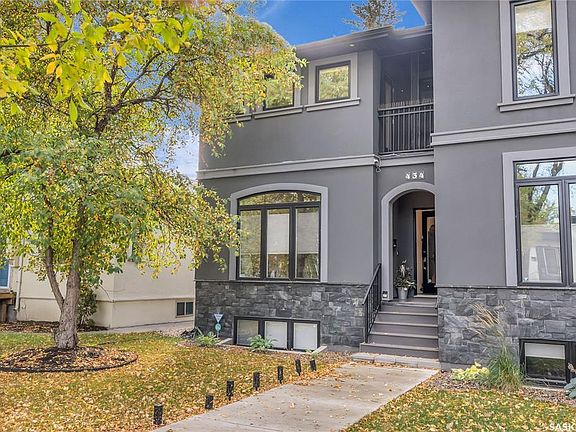 434 7th Street East has officially hit the market! Built by Centennial Homes and ideally located just steps from Broadway and 8th Street, this stunning property allows you to stroll tree-lined streets to some of Saskatoon’s best restaurants and shops. Inside, you’re welcomed by a bright living room with oversized windows, a sleek 3-sided frameless glass fireplace, and hardwood floors that carry seamlessly into the chef-inspired kitchen featuring walnut cabinetry, granite countertops, a plumbed island, and a gas Bertazzoni range, with the dining room offering direct access to the deck. The low-maintenance backyard includes a deck with natural gas BBQ hookup, patio, and a heated detached 2-car garage. Upstairs, the primary suite boasts a private balcony, walk-in closet, and spa-like ensuite with heated tile floors, joined by two more bedrooms, a 4-piece bath, laundry, and ample storage. The lower level impresses with a glass-enclosed dual-controlled wine room holding 100+ bottles, a wet bar with mini wine fridge, cozy family room, built-in desk, a 4-piece bath with updated fixtures, and a spacious bedroom. With a furnace replaced in 2022, high-efficiency mechanical systems, central air, central vac, solid core doors, built-in speakers, and fully landscaped yard with sprinklers, this Centennial Homes build combines modern luxury, thoughtful design, and an unbeatable location.