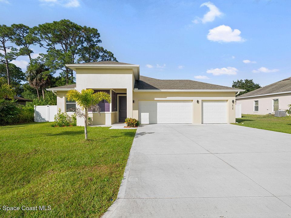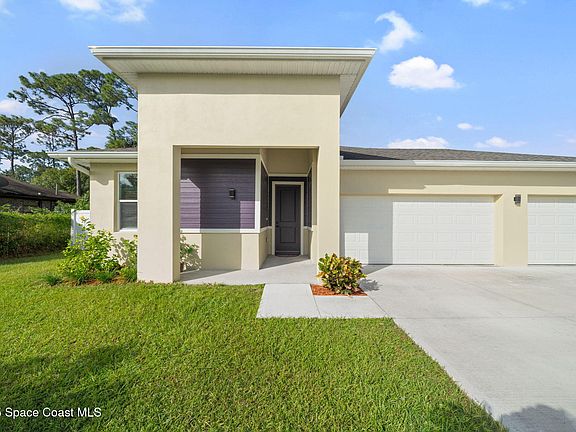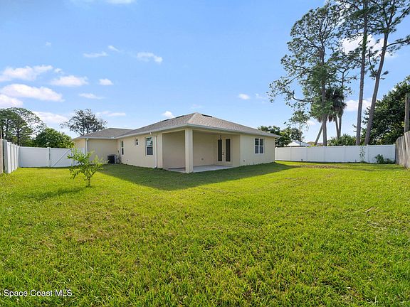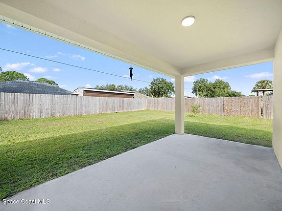 2024 Build 4 bedroom 2 bath home for rent in Northwest Palm Bay. Tile flooring throughout, open floor plan with vaulted ceilings. Spacious kitchen with stainless steel appliances and granite countertops. Covered rear patio, large fenced backyard and three car garage. Great location, close to shopping and restaurants. Lawn care included in rent.