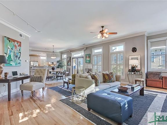 This spacious and bright condominium offers over 2700 sf in the heart of America's favorite historic city! An elevator provides easy access to the homes main level. The large, open floor plan with abundant windows is flooded with light and offers views to the north, east and south. It features gleaming hardwood floors, built-in cabinetry, 10ft ceilings, and a powder room. Double glass doors in the dining area lead to an east facing balcony. The kitchen with brand new appliances opens to a large screened porch with access to a shared courtyard and garage. The second level features a suite that includes an office area with a balcony, an enormous walk-in closet, a bathroom with separate tub and walk-in shower, and a large private porch with views north. Between the suite and the guest room lies a jaw dropping bonus space with a view of the gorgeous live oaks on Oglethorpe Avenue. This space could be easily re-imagined as a third bedroom. Enjoy storage throughout unlike any other condo.