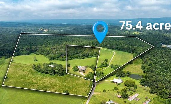 Enjoy the serenity of country living on 75.4 acres of gently rolling hills. From the hilltops, take in stunning sunsets that paint a beautiful backdrop. This remarkable property offers limitless potential for homesteading, farming, or simply retreating to your own private haven away from the busy pace of everyday life. The lower pasture, once leased to a cattle farmer, includes a WET-WEATHER POND and a POLE BARN perfect for storing hay, farm equipment, and more. Approximately 54 acres +/- provide wooded seclusion, ideal for recreational activities or future development.