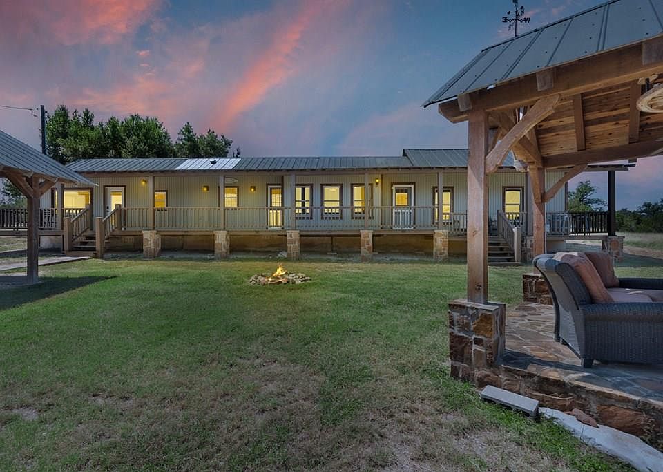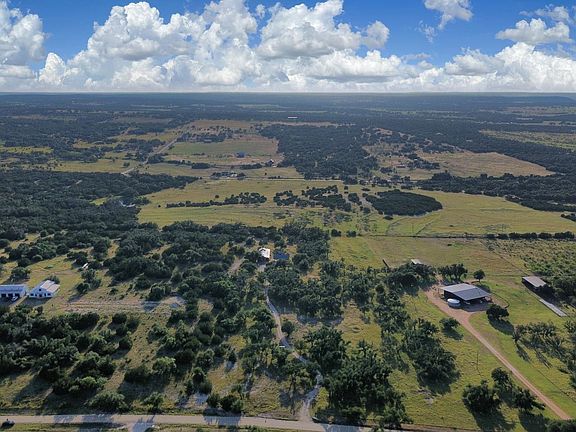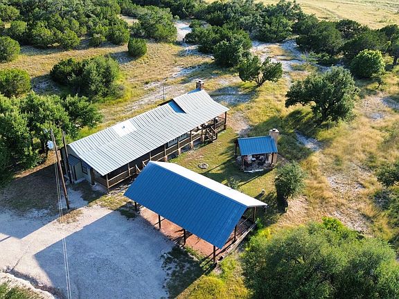 Escape to your private retreat on 10 +/- acres in the Texas hill country, boasting beautiful oak trees spread throughout the whole property with great grazing for livestock. Secured with a 5-strand barbwire fence around the whole property with keypad and remote access with your own automatic gate. As we step into this property, you'll find a 3-car detached car-port and a 3-bedroom, 2.5-bathroom home with a porch spanning the entire back of the house, perfect for enjoying peaceful mornings. A outdoor pavilion with a fireplace for evening relaxation under the stars and taking in the amazing views of the property. The kitchen features quarts countertops, stainless steel appliances. Recent updates to the home include new lighting throughout, as well as new flooring in the rooms and renovated bathrooms. Stepping outside, you'll find a well and wellhouse with a 1500-gallon water tank, with a replaced 5gpm well pump in 2023 a shop/storage building that has been updated with new electric, outlets, windows, door, and paint, offering many options for conversion into a small guest house, shop, office, or B&B. immerse yourself in tranquility and natural beauty in this amazing property.