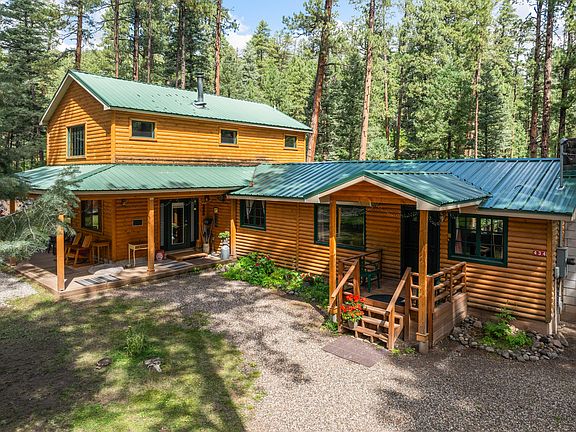 Heaven in Horseshoe Springs! Surrounded by soaring pines & crisp mountain air, this beautifully remodeled cabin blends rustic charm with modern comfort. Natural knotty pine walls pair perfectly with wood flooring, & a country kitchen that is cute as a button! Two inviting living areas, each with its own woodstove (including a Blaze King), along with 2 bedrooms, 2 bathrooms, & a spacious loft. Soaring ceilings & abundant natural light, this cabin has room for everyone! Outdoor living shines with a covered porch in front and a sunny deck out back. A community water system and well-managed HOA keep life simple, with roads maintained year-round. Bordering common lands with trail leading to San Antonio Creek & endless recreation all around, this cabin is waiting for your mountain memories!