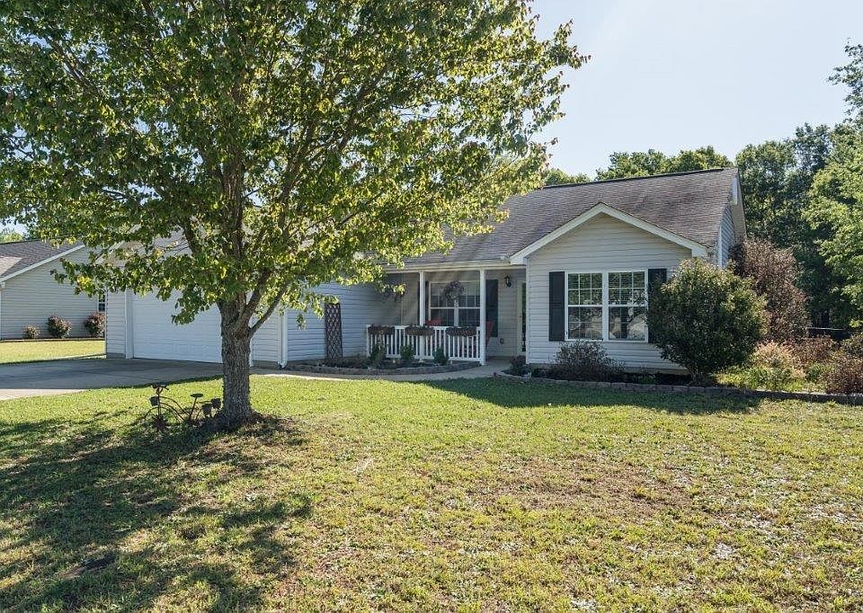 This adorable home located in a family-friendly neighborhood will not last long. Located on over half an acre lot which has a fenced backyard that backs up to woods allows for privacy and plenty of space for the kids and pets to play. Inside you will find high soaring ceilings and an open floor plan perfect for entertaining. Enjoy preparing meals while still being able to interact with your family and guests. The primary bedroom, located on one side of the home offers just a bit of separation from the remaining 2 bedrooms and guest bath located on the opposite side of the family space. Owners had New Laminate Wood Floors installed in 2020 in main living space, a new microwave installed above the range was completed in 2022, and a New Disposal in 2021. For the handyman/woman, the owners had a high-end workbench and shelves put into the garage space. Take time to visit 434 Mandys Meadows. You will fall in love with this small quaint hidden neighborhood and precious home.