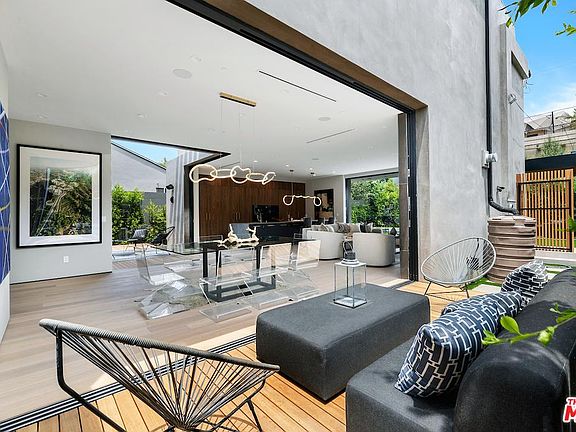 Gated architectural home designed for the most discerning Residents! Enter through a high grand pivot door to an inviting home gracefully completed with multiple wood and rooftop decks of approx 1,500 additional sqft and stunning views of the LA skyline and Hollywood Hills! New construction finished with wide plant white oak floors, Spanish tiles, custom imported Italian vanities and Miele appliances and more. The oversized kitchen island and counter seating open to the family room and outdoor pool/spa/cabana and outdoor TV and all surrounded by lush green hedges. The dining room has pocket doors which open to a private outdoor lounge perfect for hosting and a downstairs office/suite with private patio. The Master suite is complete with a warm white oak wall covering, large walk in closet, master bath with free standing tub and double shower head, plus two balconies with an outdoor fireplace/lounge area. Two additional suites across from the master suite each with on suite baths and balconies. Crestron home automation, alarm, security cameras and full mature landscaping complete this well appointed home. Available furnished or unfurnished. *Some furnishing/artwork may be different than the listing photos. CSO paid on 1st year only. Owner pays for gardener and pool servicing. Tenant pays all utilities.