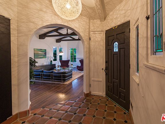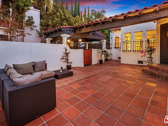 Santa Barbara's top designer has achieved the perfect balance between true Spanish architecture and modern interiors. Enter through the private courtyard into the foyer where the original charm of this home greets you. Step into the spacious light-filled living room with high ceilings, wood beams, hardwood flooring and fireplace. The formal dining room leads into the modern-style gourmet kitchen w/breakfast nook, featuring stainless steel appliances, deep farmhouse sink, marble countertops and an array of cabinet space. A rare to find California basement is accessible from the kitchen. The master suite features built-in closets, modern bath w/double sinks, tub and separate oversized shower. The bedrooms are spacious and the modern style designer bathrooms display beautiful tile work. Double doors lead from the master into the backyard with a brand-new, sparkling pool + spa, finished deck and cabana. Located on a quiet street, close to the Grove, Farmers Market and Beverly Center.
