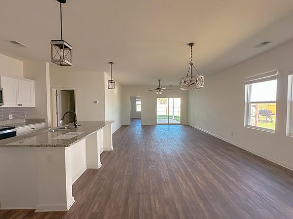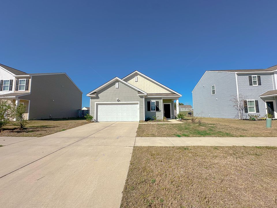 Welcome to Pender Woods in Cane Bay Plantation! This thriving community is well-established in the heart of Berkeley County, South Carolina. This residence features three bedrooms and two bathrooms, complemented by open living spaces, a privacy-fenced backyard, and a covered patio. Notably, the property is less than a five-minute walk from the Pender Woods community pool, playground, and green spaces.The kitchen is equipped with granite countertops, a stylish tile backsplash, and an island that overlooks the living area, along with a generously sized pantry and all essential appliances. Additionally, the home boasts upgraded light fixtures throughout and LVT flooring in all areas. This property is ready for its new owners!