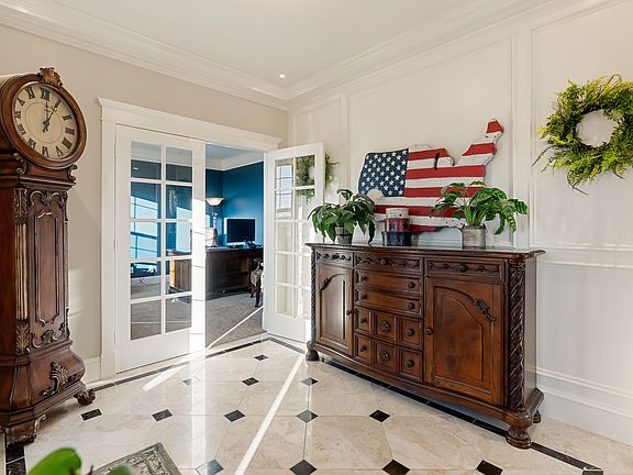 Sellers are motivated to move on to their next adventure. Experience unparalleled luxury and breathtaking 360 views in this stunning 5-bedroom, 3.5-bathroom residence. Immerse yourself in panoramic vistas that stretch as far as the eye can see, creating an unforgettable living experience. Inside, discover a world of refined elegance, where premium cabinets and countertops, a coffered kitchen ceiling with 12" crown molding, and designer lighting create an atmosphere of sophisticated comfort. The fresh feel of new paint and plush carpeting complements the striking marble floors, while premium trim and thoughtful details elevate the entire home. The gourmet kitchen is a chef's dream, featuring a gas range and double oven. Entertain in style with Doric columns on the main level and a cozy gas fireplace. The huge master bedroom is a true retreat, complete with a walk-in shower, jetted tub, and a spacious layout that offers ample room for relaxation and personalization. Practical updates include two laundry rooms and added storage above the garage. Outside, discover raised garden beds, a charming cottage garden, and striking facade outdoor lighting.