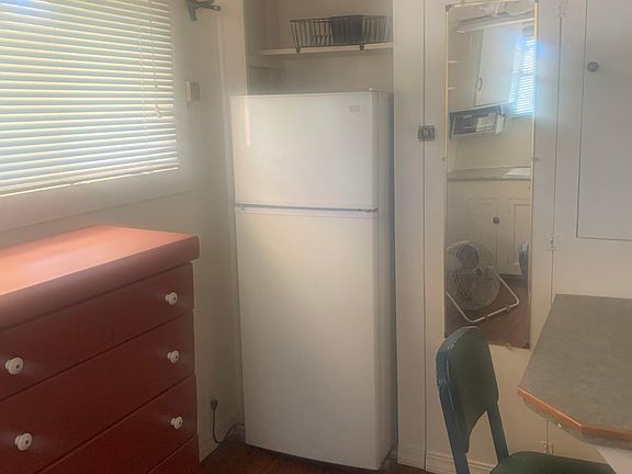 One-person rental. Utilities and laundry facilities included in rent. (excludes phone and cable cost) Very small studio furnished with single bed, dresser, chair. Small kitchen with sink, cupboards, refrigerator, hotplate (no stove). Wall heater, no A/C. Small bedroom and small bathroom (toilet and shower).