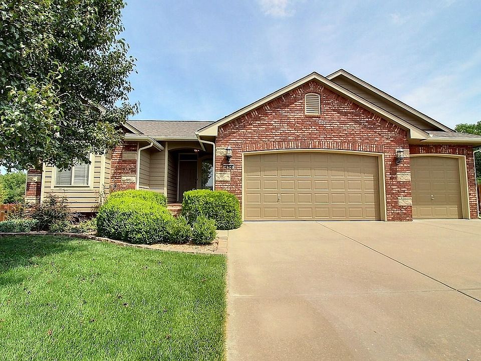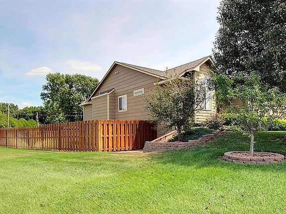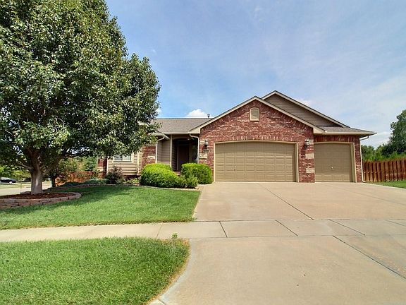 One-owner, 4 bed, 3 bath home sitting on a large, ½ acre lot in the desirable Auburn Hills addition, as well as in Goddard Eisenhower schools. Great curb appeal on a wood-fenced corner lot for tons of privacy. The home welcomes you with vaulted ceilings, recesses lighting, bullnose corners, gas fireplace and rich-colored wood trim. Hardwood maple floors cover the open and spacious dining area, nook and kitchen. The open kitchen features an eating bar, plenty of cabinet/counter space and a lighted walk-in pantry. The Master Suite feels spacious with vaulted ceilings, sitting bench, plenty of windows and access to the deck. In the Master Bath, you’ll find 2 sinks, soaker tub, a separate shower and a tall walk-in closet. In the basement, the large family room has luxury vinyl plank flooring, built-in cabinets and a wet bar that’s furnished with it’s own dishwasher and space for a small fridge. The 4th bedroom is currently fitted with built-in cabinets for the craft and hobby enthusiasts. There’s also a framed 5th bedroom if needed! The massive storage/utility area has plenty of power throughout, perfect for a small shop. The home also includes a 1-year old HVAC system, a plumbed central vacuum, a laundry room for stacked or side-by-side W&D, and a full security system. Access your deck from the dining area or the master bedroom, as it overlooks the private, large back yard. The yard is kept green with a well and sprinkler system, and there is also a stick-built storage shed If you are looking for space, inside and out in Goddard schools, you’ll want to experience this home!