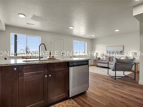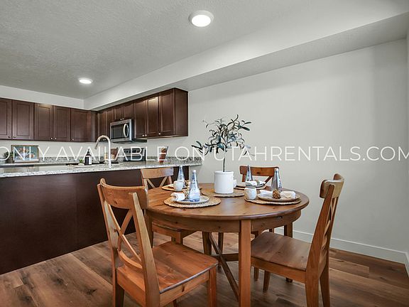 The apartment, situated at 434 W Main St, Santaquin, UT 84655, offers 2 bedrooms and 1 bathroom within an 800 sq. ft. space. The monthly rent is $1,175.00 with an equivalent deposit amount (O.A.C.). A 12-month lease is available, with an option for renewal or shorter term starting at 6 months. It's important to note that smoking and pets are prohibited in the apartment. The apartment is move-in ready and features a well-designed kitchen with upgraded custom cabinets, solid surface countertops, an island, and high-end appliances. Additionally, there is a beautiful living room, two bedrooms, and one bathroom on the upper floor. The apartment's location in Santaquin provides convenient access to Payson, Salem, various shopping and dining options, outdoor recreational activities, and I-15. The Grove offers one and two-bedroom units, featuring a great room, white granite countertops, stainless steel appliances, LVP flooring, and carpet in the bedrooms. Tenants are responsible for gas, electric, and cable expenses, along with a $210 monthly amenities fee covering garbage, water, sewer, and Google Fiber internet. Furthermore, there is a $42 monthly fee for liability coverage, portal access, filters, and round-the-clock maintenance emergency services. The non-refundable application fee is $50 per person. Ensure to attach ID copies and pay stubs. Following approval, a $150 lease initiation fee is charged before move-in. It's important to note that the photos are from a similar unit within the same building.