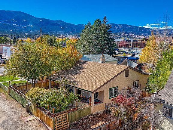 Charming historic home "in Town" Salida. Fenced front yard to enjoy the private front porch on this lovely home on a quiet street. One level living with three bedrooms, large galley designed kitchen with newer stainless appliances, open living/dining room and a nicely remodeled bathroom with a large step in tiled shower and barn door. The home consists of 1031 square feet of living space ready to add your own personal touches. Enjoy the landscaped private fenced backyard with trees, gardens, playhouse. The hot tub is included for a warm soak and evening star gazing. Additional 1104 square foot garage/workshop/storage building is located on the back of the lot. South/east facing front of the home with Methodist Mountain views. Convenient to Salida Middle and High schools. Walkable to historic downtown Salida, Shops and Restaurants. Fishing on the Arkansas, hiking and winter skiing at Monarch. Desirable In town living. By appointment.