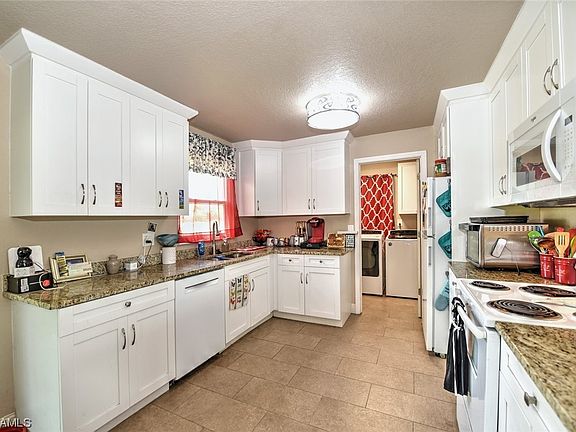 Major price adjustment, bring all buyers!!!Great starter home! This 2-bedroom 1 bath home has been nicely updated. The kitchen has white shaker cabinets and granite counter tops. There is tile throughout, newer appliances and the roof was re-shingled in 2020. The spacious laundry room has lots of cabinets and the washer and dryer are included. Walk out the sliding glass doors onto the large, screened Lanai overlooking the canal. This home would be ideal for a first-time home buyer or rental income. Great location, close to schools, Dr offices, shopping, and restaurants. This will go fast!!