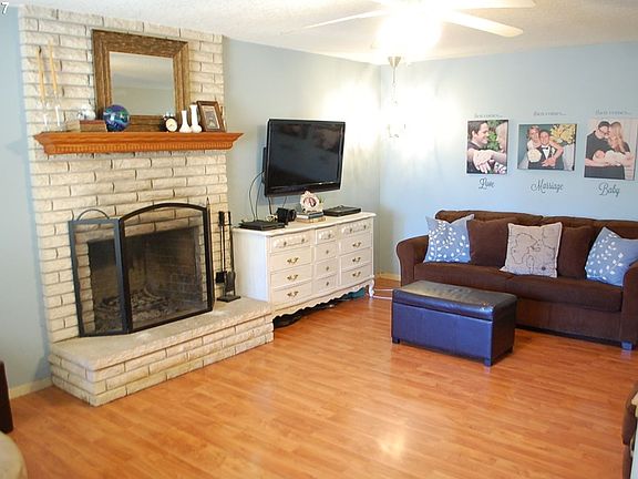 Charming single-level ranch house large bedrooms half bath in master wood burning fireplace new tile and laminate wood flooring updated kitchen great neighborhood fenced backyard with shop