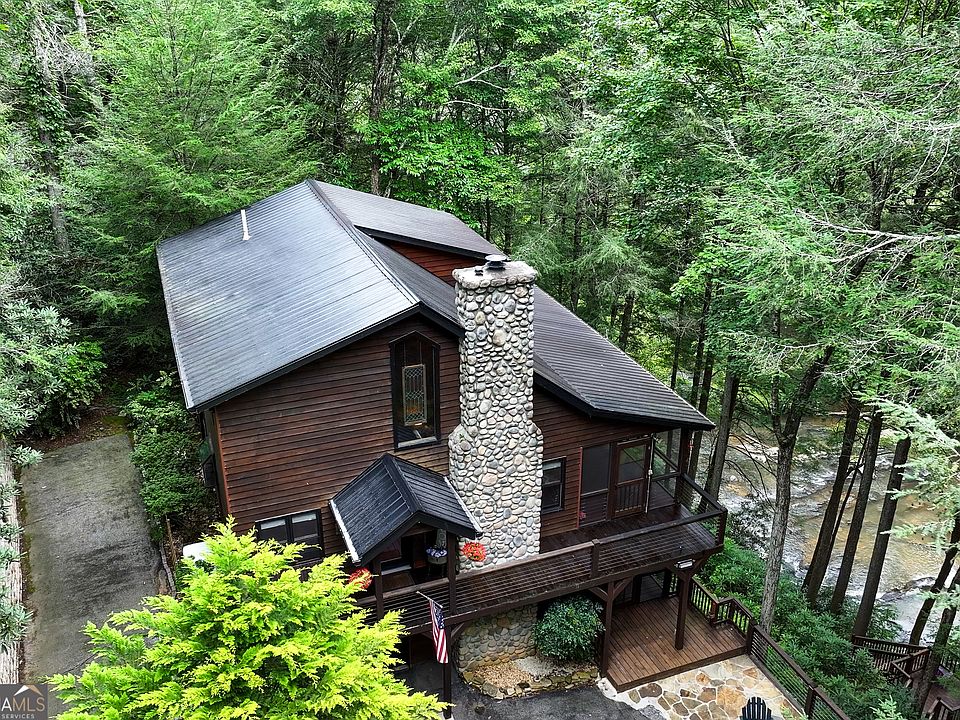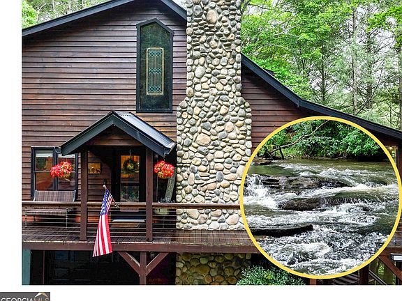 ***Go to YouTube and type: Riverfront Cabin on the Ellijay River Minutes to Blue Ridge*** and see a stunning video of your new RIVER cabin. Are you ready for fall in North Georgia? This fully furnished 4 bedroom, 3 bath cabin (+ bonus room loft for an optional 5th bedroom/sleeping area) is perfect for your own private use, or for an investor looking to short term rent. The magic of this cozy riverside retreat lies in the sights and sounds of the Ellijay river, surrounded by beautiful hemlocks. You can both see and hear the river from the cabin. The river is 51 steps from your cabin's fire pit. In the summer, tie up multiple river tubes and splash around while creating memories with family & friends. Yes! The Ellijay River is stocked with Rainbow and Brown Trout! In cooler weather, grab a blanket and roast marshmallows by your outdoor fire pit. In any weather, simply sit in a rocking chair or hammock on either of your two expansive porches and immerse yourself in tranquility. Nothing beats dining al fresco with twinkling lights and the music of nature. Centrally located between the charming towns of Ellijay & Blue Ridge in the desirable & gated Goose Island Hideaway. This quiet and private neighborhood features serene paved roads. Let the deer, turkeys and of course - geese welcome you as you enter the friendly neighborhood. Many updates and renovations including: new hot tub, new whole house generator, and massive hardscaping improvements which are evident the minute you arrive in the oversized driveway. You even have a garage to park your side by side UTV & other toys. Or, you can use the garage space as an owner's storage, or any other creative idea you can dream of. Other updates include: new gas stove, vinyl plank flooring in all bedrooms, new shower remodel in upstairs bathroom, granite counter tops, sinks and faucets in all bathrooms, new shower doors and exterior sliding doors, etc. Be sure to see our complete list of upgrades, as the list goes on! Ask about up to $10K in lender incentives with our preferred lender.