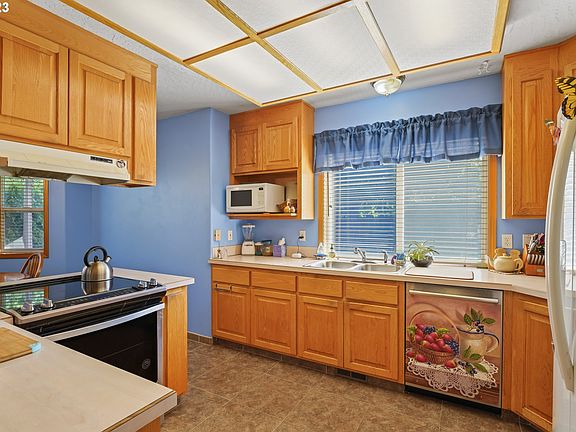 - Features: Eat Bar, Eating Area, Garden Window, Nook, Free Standing Range, Free Standing Refrigerator, Tile Floor